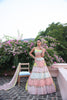A Beautifully Crafted Multi Hue Lehenga Set with Statement Blouse and ebroidered duppatta. The detailings on each pieace of this ensemble is combined effort of multiple artisans.