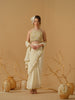 • Embroidery Details : Border on saree with scattered effect using dull gold geometrical shaped sequins and blouse having floral hand embellishment using white and gold yarn, geometrical shaped sequins, beads and pipes.