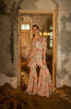 This outfit consists of a pre-draped sharara saree paired with a hand-embroidered blouse and styled with a belt.