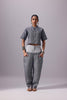 The Aditi Set in Chambray is a modern fusion ensemble that reimagines tailored separates with an artisanal twist. Crafted from 100% linen, this set features a cropped jacket-style blouse with curved seam detailing and a structured mandarin collar, paired with relaxed-fit trousers designed with a unique layered waistband effect. The tonal chambray blue linen creates a denim-like impression while maintaining the softness and breathability of pure linen. Perfect for festive fusion events, conscious everydaywear, or destination dressing, the Aditi Set balances structure with comfort, making it a versatile addition to your wardrobe.