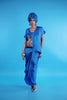 A vibrant and stylish blue ensemble designed to captivate attention. This set is crafted in luxurious silk with relaxed fit top and embroidery details on one side adorned with black fringe details.