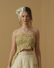 Featuring An Asymmetrical Ruched Tube Top Embellished With Gold Sequins Lines.