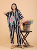 An anti-fit top in black and white broad stripes and a fan print detailed with shirt collar and cuffs. It comes with a matching print straight pant.