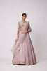 Ash Pink Organza Lehenga And Dupatta Clubbed with Real Hand Cut Mirror Embroidered Elbow Sleeve Length Blouse.
