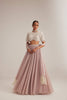 Ash Pink Skirt Paired with mirror and pearl embroidered High Neck blouse and Stole With Cascading Pearl Tassels.