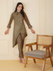 Asymmetric Cut Jacket with Band collar Tieup and fitted pants