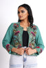 Let your fashion sense bloom with this magnificent green jacket. A seamless fusion of craftmanship and opulence crafted using Aari and Zardozi techniques make this jacket truly enchanting. The lush green colour and a captivating array of sequins, beads, raffia, and tube beads give its wearer a fresh and breathtaking appearance.