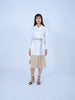 Made with suiting fabric this versatile shirt dress with a curved hemline is adorned with a detachable belt. Model height is 5.10" Model wear size M garment length is 44"