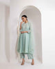 Chanderi Flared Kurta With Very Intricate Pearl Hand Embroidery And Scalloped Pearl Finish In The Sleeves, Paired With A Silk Broad Pant And An Organza Dupatta With Pearl Scallop Embroidery.