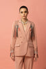 Elaborate beaded fringes and sequin embellishments that shimmer with every movement. Whether it’s a chic soirée or a special occasion, this peach blazer promises both opulence and timeless charm. The tailored fit flatters your silhouette, while the double-breasted button fastenings add structure.
