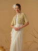 Featuring A Close Neck Full Length Sleeveless Concept Saree Paired With Floral Embrodery, Above Elbow Sleeves Jacket