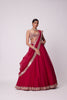 Crimson Red Organza Hand Embroidered Lehenga Set