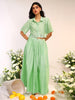 Button Down Cropped Shirt With Embroidered Hem. Paired With High Waisted Gathered Skirt