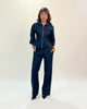 A modern take on classic style, this denim top features contrast top stitch and structured curve sleeves with two way full frontal zipper opening for adjustable styling. Fitted at waist, it flares out at the bottom creating a flattering and modern silhouette. Model wear size S model height is 5'8 garment length is 21"