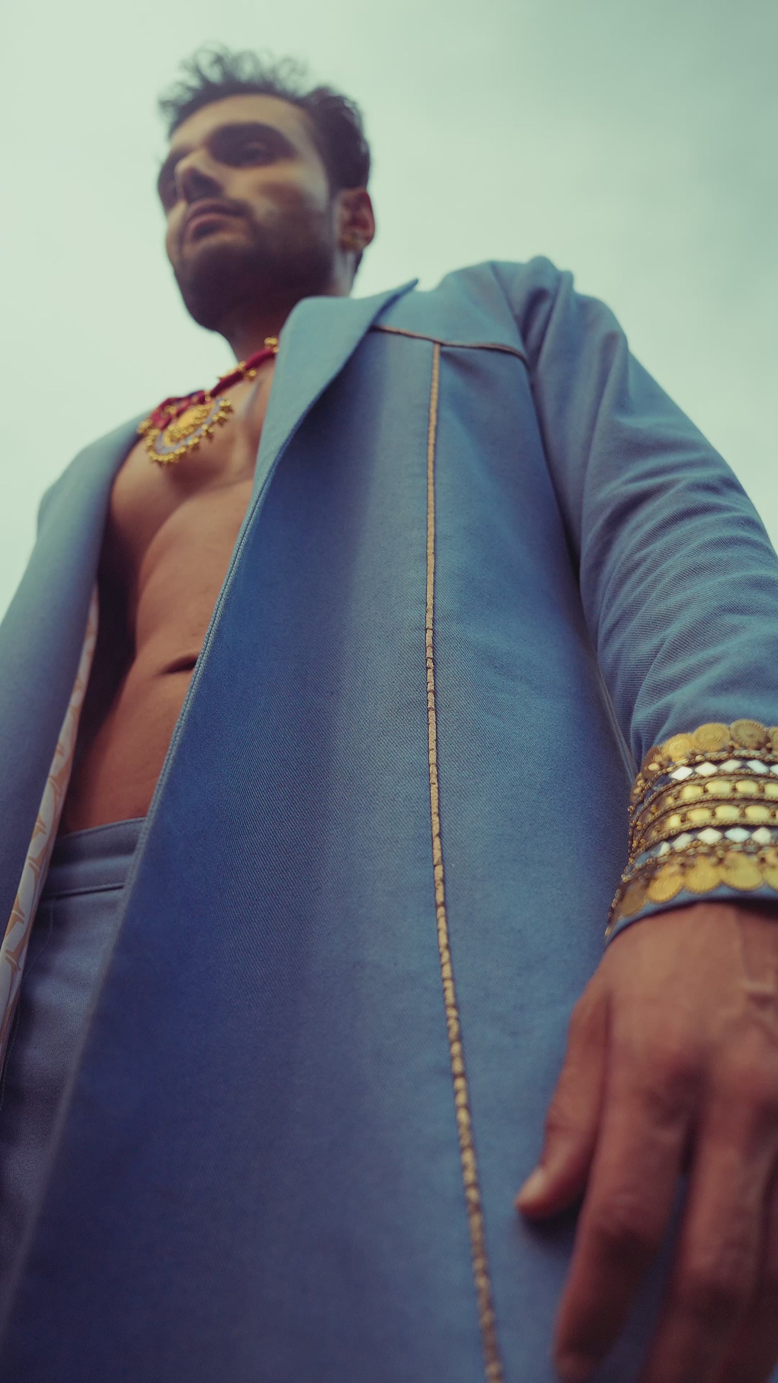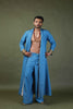 Collections 1 Devi Drape Denim Trench Coat With Denim Cargo Pants: Denim Blue - XS item is already added to cart!