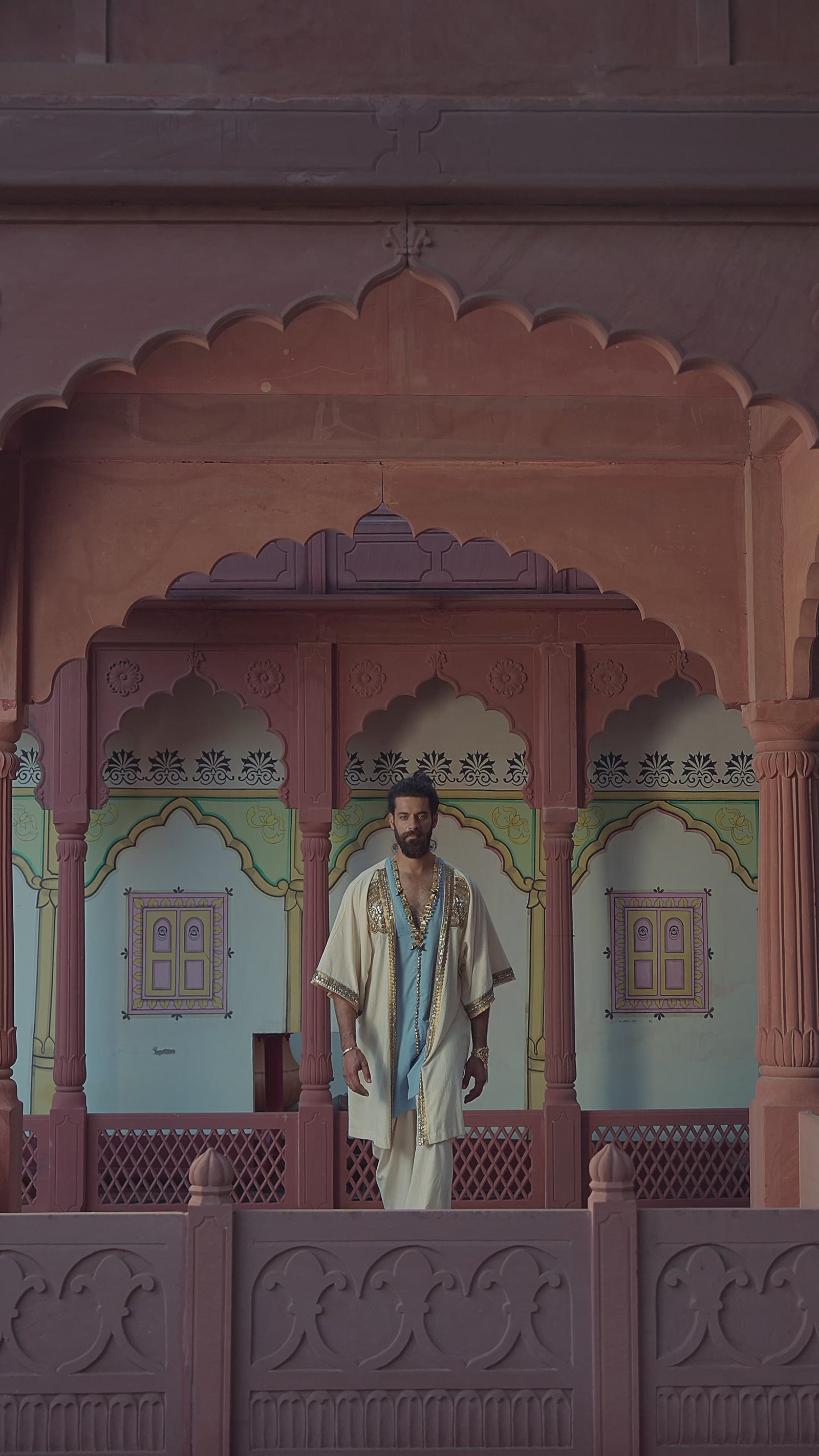 Devi Drape Khadi Kimono Kaftaan With Thin Denim And Khadi Pants