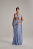 Dew Blue Linear Mirror And Pearl Embroidered Draped Saree Set