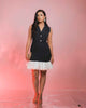 Sleeveless Blazer Collar Dress Wit Organza At The Bottom . Rhinestone Button Infront . Zip Closure At The Back