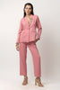 Make a statement in this refined Pink Co-Ord Set with Detachable Broach. The soft hue complements the tailored fit, creating a polished silhouette. With a double-breasted design and two flap pockets, Its both stylish and practical. The banana crepe fabric ensures comfort, while the taffeta lining adds a touch of opulence.