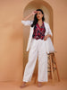 Co-Ord set of Bell-bottom pants with printed halter vest coat and long blazer.