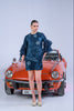 Collections 1 Gilded Dahlia Organza Sleeved Dress: Dark Blue - Cotton Denim twill, Organza - XS item is already added to cart!