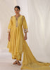 Godet kurta featuring rich gota details on the neckline and armhole, accented with a gota border on the sleeves. Work well for Summer wedding occasions.