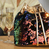 Handcrafted in embroidred sequence and Genuine Leather - drawstring - Crossbody Bag - Lined with premium french seude lining - One card pocket inside.