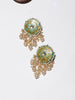 Showcase your style with this stunning drop earring in green, Fitted with fine kundan. Meenakari earring wth pearl hangings, this piece is perfect for weddings, parties, or everyday use A must-have accessory; Category Of Jewellery is Earring; Sub Category is Drop; Ideal For Women; Color is Green, Yellow, White, Cream, Gold; Gemstones Used - Kundan, Pearls, Natural Stones; Plating is Gold-Plated; Base Metal is Alloy; Other Material Used - Closure Stopper; Size is Freesize; Adjustable - No; Weight is 36 gms; Mesaurements - Length of Earring= 7 CM; Width of Earring =4 CM; Adjustable - No; Content 1 Pair Earring