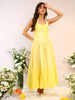 Halter Neck Corset Like Midi Dress With Embroidery Detailing On Strap