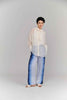 Bat wing shirt in sheer organza with a slip inside and ombred pants