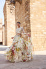 Ivory Printed Embellished Top Paired With Skirt