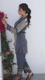 Blue and Beige color Tunic set consists of tunic and straight pant