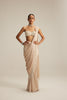 Light Beige mirror and pearl Satin Draped Saree set