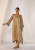 Linen Satin V Neck Kurta With Scatter Embroidary Paired With Slim Pants