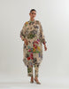 Collections 1 Long shirt tunic in botanical print with rehsam embrodroidered border paired with stretch cotton pants: Multi-Color - XS item is already added to cart!