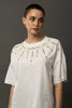 This exquisite white shirt, crafted from the finest single jersey fabric. It features a delicate Stone and Pearl Embellishment that adds a touch of elegance to the minimalist design