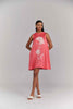 A-line lining free short dress with organza applique adorned with pearls in the front
