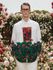 A canvas of crisp white cotton transforms into a blooming lotus garden—buds rising, leaves unfurling, wild beauty taking over. At its heart, a framed peacock stands like royalty in its natural kingdom, echoing The Wild Monarch’s symbolism of pride and grace. Artful, airy, and bold, the shirt pairs effortlessly with tailored whites for a look that feels both serene and striking.