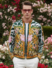 Blooming roses, golden baroque swirls, and wild camouflage collide in a jacket that celebrates nature’s most flamboyant side of power.?Crafted in digitally printed cotton, it feels breathable and lightweight while delivering a high–impact, structured silhouette.?Style it with striped trousers or solid separates for a look that’s bold, aristocratic—and unapologetically untamed.