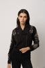 This stunning black piece is a canvas for the intricate multi-color floral patterns, brought to life with exquisite bead embroidery work.