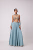 Powder Blue Lehenga Pants And Dupatta Clubbed With Real Hand-Cut Mirror Embroidered Sleeveless Blouse.
