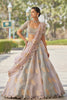 Powder Grey applique hand embroidered lehenga and dupatta with sequin embellished blouse.