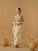 • Embroidery Details : Border On Saree With Scattered Effect Using Dull Gold Geometrical Shaped Sequins And Blouse Having Floral Hand Embellishment Using White And Gold Yarn, Geometrical Shaped Sequins, Beads And Pipes.