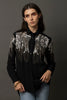 Mystique Georgette Shirt, in a sleek black, adorned with silver and gold sequins for a luxurious, embellished finish.