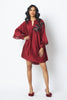 Like a slow dance at dusk, where confidence lingers in the air. Rich crimson falls in an effortless swing, its fluid silhouette crowned with bold black florals that command attention without asking for it. Free in size, fearless in spirit — made to move with you, and never against you.