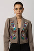 This stunning black piece is a canvas for the intricate multi-color floral patterns, brought to life with exquisite bead embroidery work.