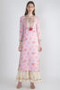 Featuring A Blue Kurta In Linen Georgette Base With Print. It Has Hand Embroidered Gota Work Neckline And Slit Detail.