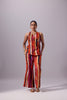 • SEO Description : Make a statement with the Ruchi Set in Ember - a linen co-ord featuring a halter-wrap top and flared trousers in fiery brushstroke hues. Perfect for festive brunches, cocktail evenings, and destination celebrations.