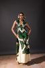 The Saanvi Set in Sage is a regal two-piece ensemble crafted in 100% linen, blending modern elegance with timeless heritage charm. The set features a sleeveless long kurta adorned with bold sage green motifs against a soft ivory base, paired with fluid ivory wide-legged trousers. Designed with deep side slits and practical pockets, the kurta allows ease of movement while remaining striking and festive. The Sage palette of emerald green and ivory lends an aura of richness, making it perfect for Diwali gatherings, puja ceremonies, mehendi rituals, or pre-wedding festivities. Lightweight yet statement-making, this set is ideal for women who want comfort and grandeur in equal measure. Style it with the optional matching headscarf for a complete coordinated look.