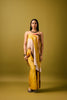 The Sanja Set in Solaris is an elegant blend of structure and fluidity, designed to bring effortless sophistication to festive wardrobes. Crafted from 100% linen, the two-piece set features a strapless layered drape top with an asymmetric hem, paired with flared pants for a contemporary silhouette. The Solaris palette radiates warmth with bold strokes of saffron yellow, earthy browns, and subtle ivory highlights, echoing the glow of golden sunsets. Chic yet comfortable, the Sanja Set is perfect for festive gatherings, cocktail evenings, or modern wedding celebrations.